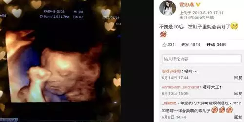 上个月,同样为台湾艺人的吴佩慈也在自己的脸书上放了宝宝的超声波照片!晒宝宝照片可不仅仅在台湾艺人中流行,大陆艺人早就在微博中晒得不亦乐乎。