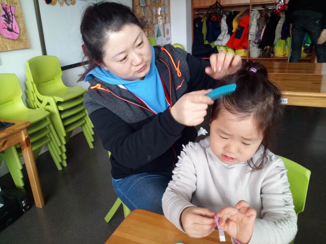 每一天午睡起床后,搬把椅子坐在女孩子们中间为她们梳辫子已成为我生活的一种享受。其实我并不太会梳理头发,每次给孩子们扎的辫子总是歪歪扭扭的,但孩子们喜欢,我就沉迷不醒。而且它也让我有更多的机会了解孩子,触摸孩子的心灵世界;让我有更多的机会因人施教,适时指点;让我和孩子们之间更加信任、和谐、有爱。 每当这时,我们之间的距离拉的更近了。孩子们总是唧唧喳喳的和我说个不停。 “老师,我妈刚给我买了电子琴!”“老师,那首歌我会了!”“老师,我能自己吃饭了”……” 当然,此时也是我了解他们生活、心理的良好时机,适时指点、鼓励的好时候。“你最喜欢老师哪里?你的好朋友是谁?你最愿意参与哪个活动?你晚上睡觉还用妈妈陪吗……”这些他们日常平凡避而不答的问题,这时就会都争着回复,而且都个个很积极。就这样,我把每一天起床后给孩子梳理头发作为一种与孩子交流的方式,为此,我还多学了一些编不同发式的方法。 看到梳好小辫的孩子一个个满意的回到座位上,脸上洋溢着无以言表的欢愉,此时,我与孩子一样幸福。我的幸福也就是在这日复一日泛泛、平淡、平凡的工作中,不断发现新奇、新鲜、新意中积攒起来的。