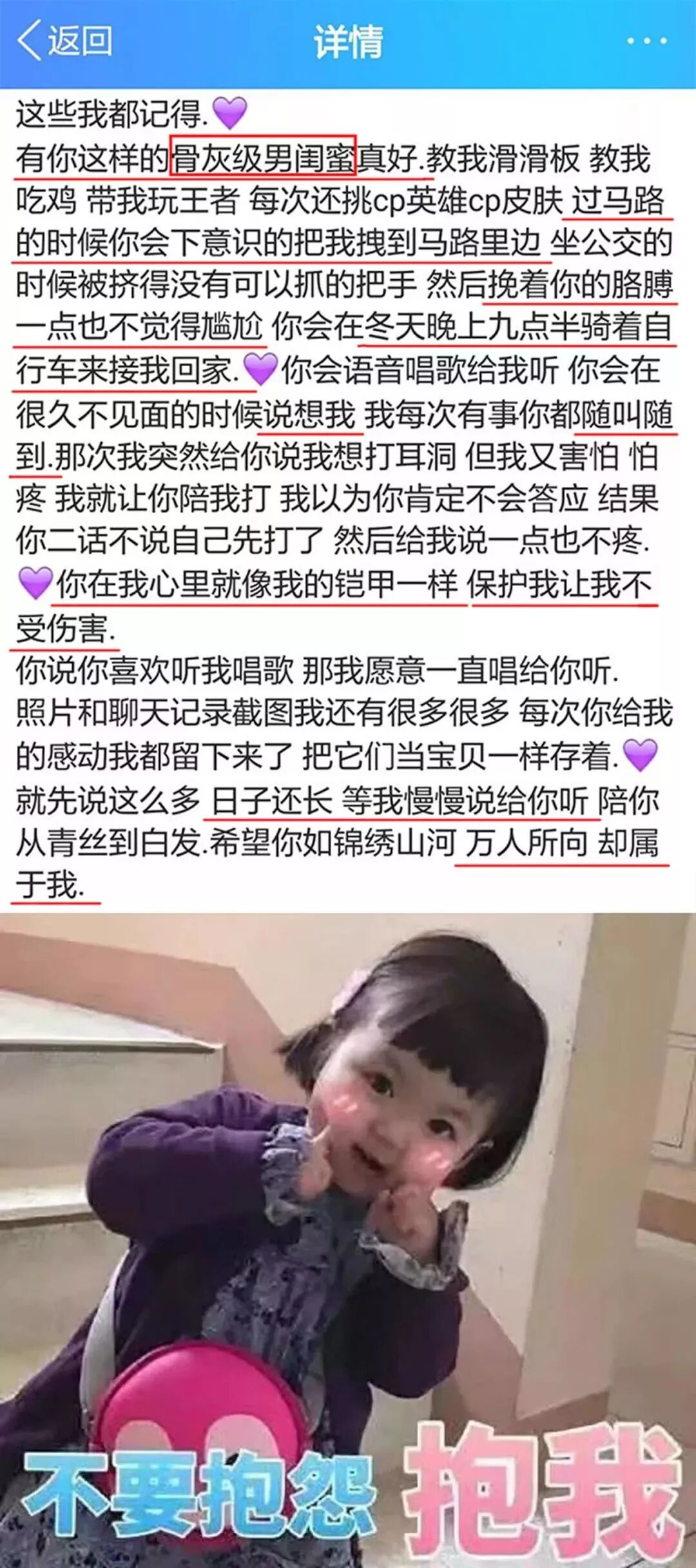 网上看到一张截图,是一位女生写给她的“骨灰级男闺蜜”(别人家老公)的,看完极其不舒服: