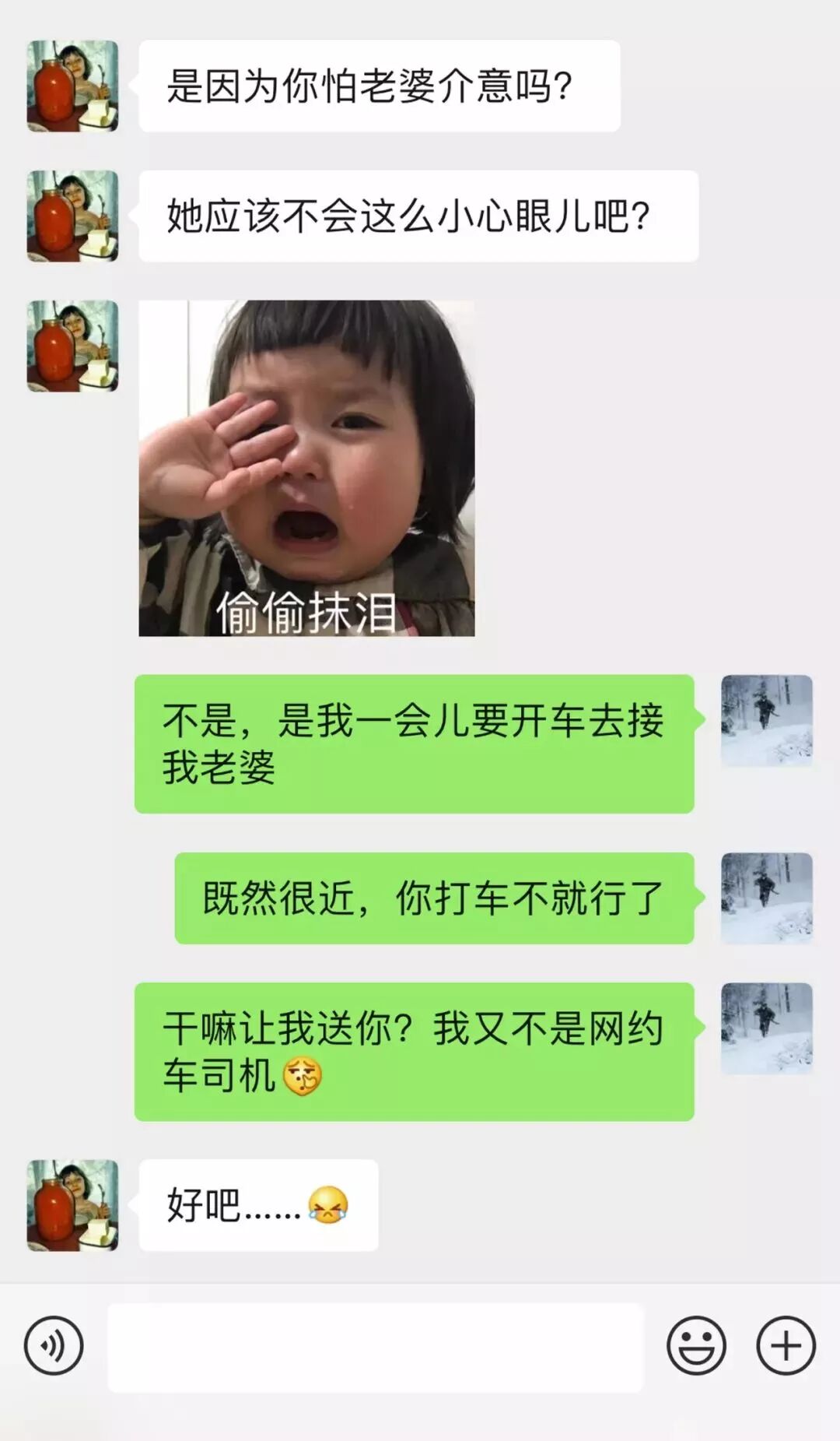 随后,朋友发给我几组她老公和绿茶女同事的聊天截图。