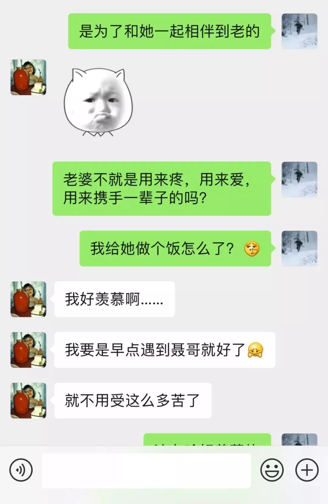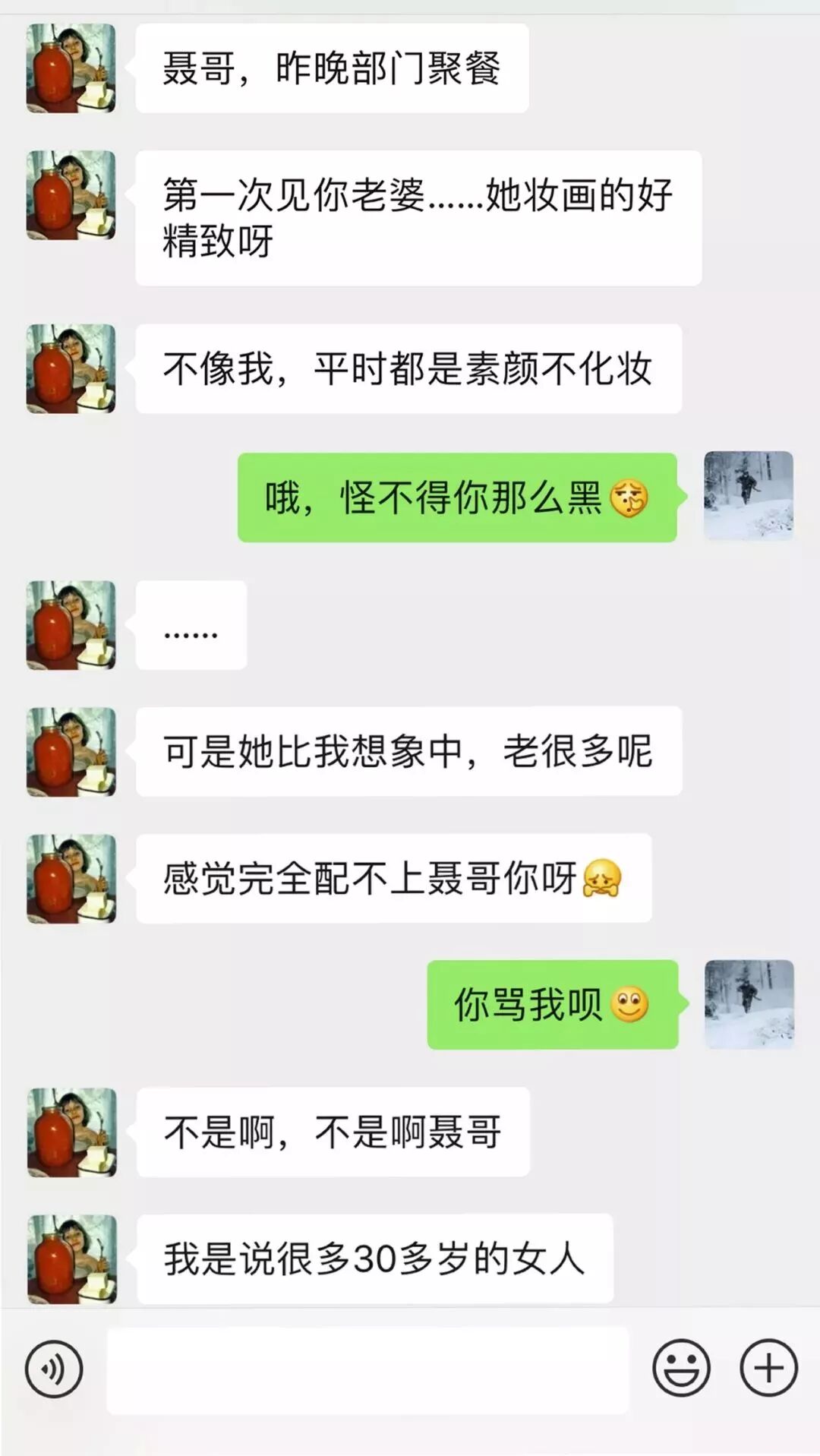 看完老聂和绿茶女同事的聊天,真是感慨万千。