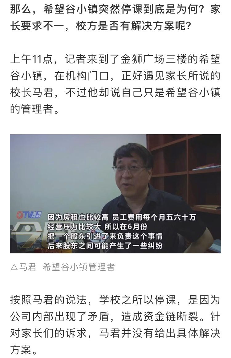 在场家长表示,如果马君给出的解决方案始终无法令人满意,他们将选择通过法律途径维权。