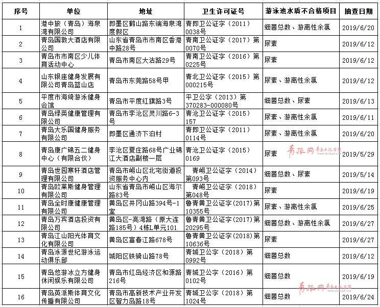 青岛16家不合格游泳池名单