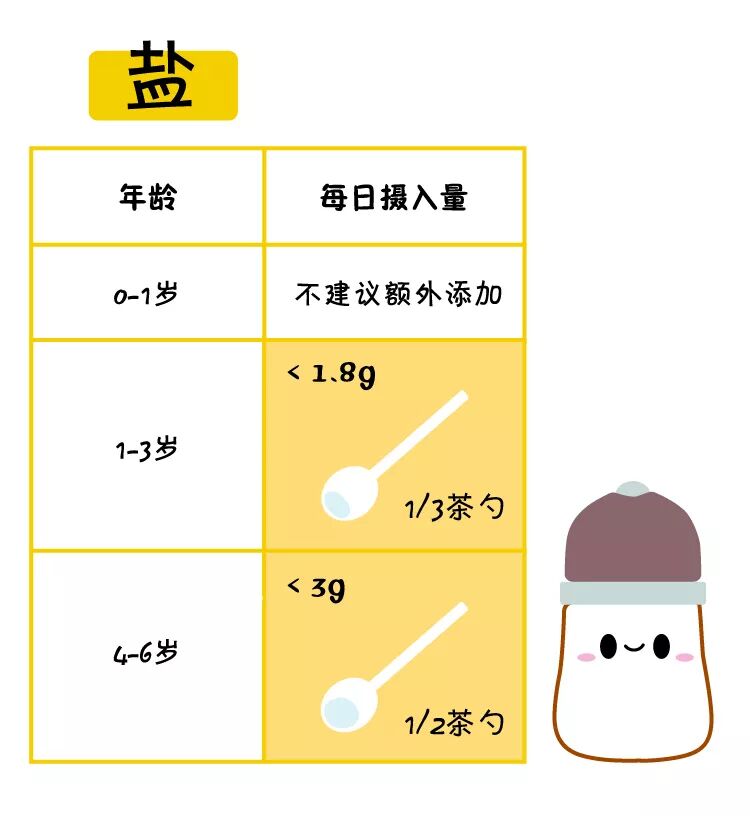 《中国居民膳食指南》中建议,1岁以下的宝宝都不应在食物中额外加盐。