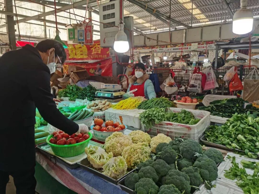 即使是社区周边的小农贸超市,来采购的市民人流量依旧不少。大家佩戴口罩匆匆采购完就离开。