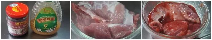 原料:梅花肉,叉烧酱,盐、糖,蜂蜜,白酒,生姜,蒜