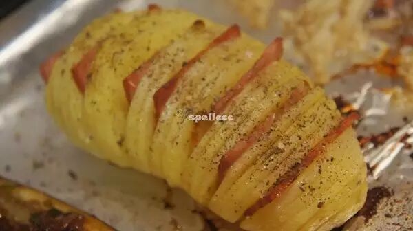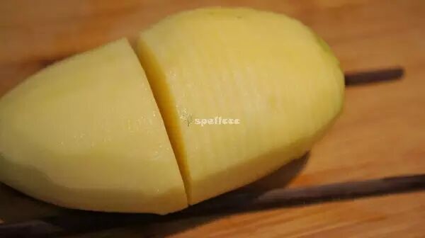 原料:土豆一只(长椭圆形),培根适量,盐少许,油少许