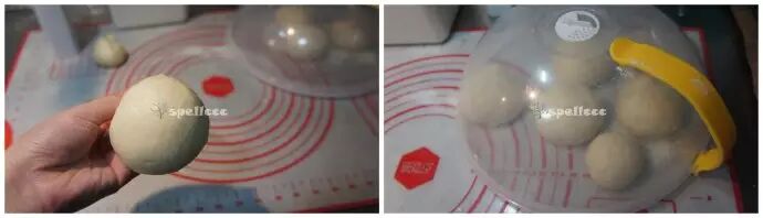 发酵好的面团排气,分割成平均的五份,滚圆,醒15分钟。