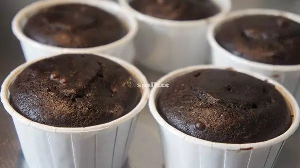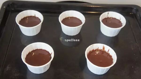分装在纸杯里。盛七分满,烤好后会膨胀。