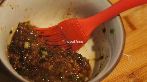 少许油,少许生抽,加上蒜,葱花,辣椒粉,孜然粉,黑胡椒粉。