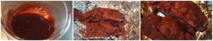 把酱汁刷在叉烧肉表面,打开锡纸,再烤制10-15分钟。