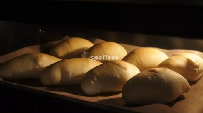 烤箱预热170度,约烤35分钟,至表面焦黄。可以看到揉到们的面团,在烘烤时还会再胀大50%左右。如果烘烤后和烘烤前体积无变化,那么多数是内部的“膜”没有力气支撑,烤出来的必是像“馒头”一样了。