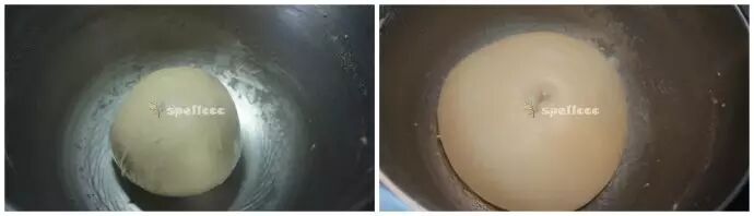 发到两倍大,手指沾面粉戳下去不回弹就算发好了。