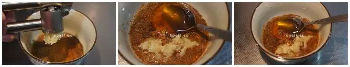 将柠檬汁,盐,糖,大蒜,黑胡椒,辣椒粉,白酒,麦芽糖或蜂蜜混合,蒜弄成泥加入,调匀。