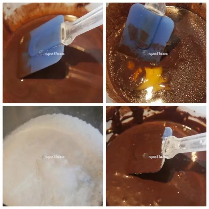 将B材料混合,把可可粉溶开,不要结块。没有可可粉可以用黑巧克力,视巧克力的甜度减糖量。