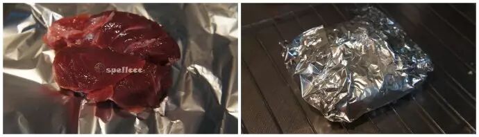 把腌制好的肉用锡纸包起来。入烤箱中层,220度,30分钟。