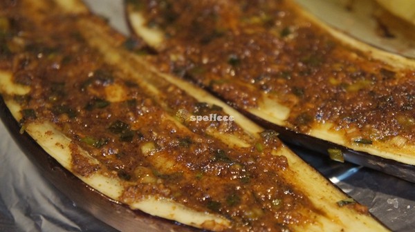 原料:粗长茄,盐,蒜,葱,生抽,食用油,辣椒粉,孜然粉,黑胡椒粉