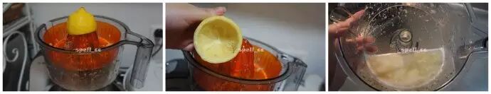 柠檬榨汁。没有机器就对半切,用勺子挤,当然费劲一些。