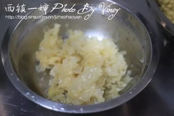 1、黄豆提前一天泡好,银耳也需要先泡好,然后剪去根部发黄的部分,再将其撕成小朵状。