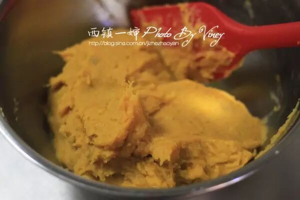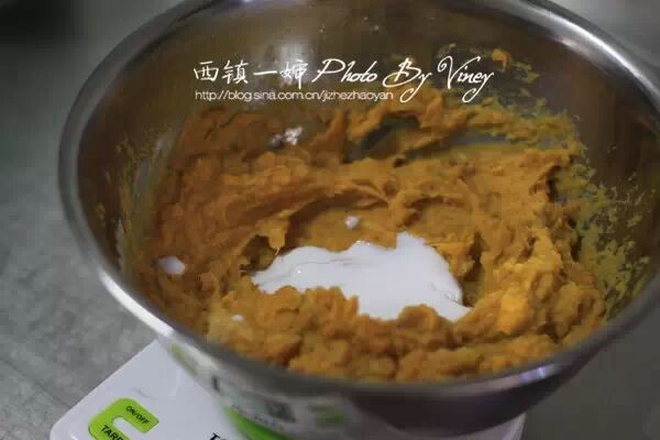 1、这个地瓜最好是用微波炉加热10分钟再碾成泥,婶子家没有微波炉,就用蒸的,所以水分就多,后面整形的时候就比较黏手。